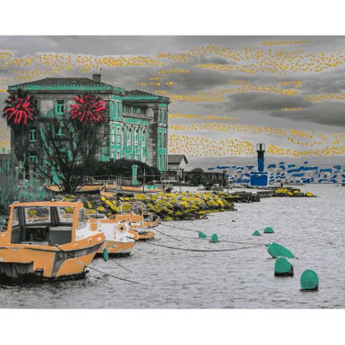 Peinture de Vanessa Atlan sur un tirage de Hervé de Mestier